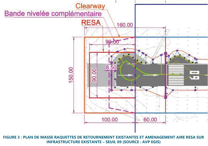 - Poursuite du programme de mise en conformité côté piste, incluant notamment l'aménagement des Aires de Sécurité d’Extrémité de Piste (RESA) pour respecter les règles de sécurité, sans pénaliser l'activité.